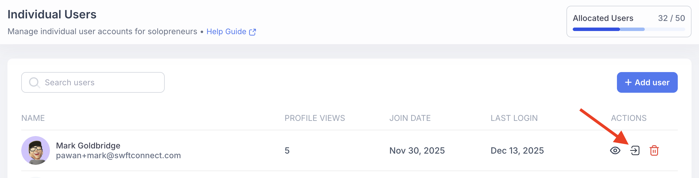 When an individual user logs in, they effectively receive the equivalent of a Swft Pro - level experience.