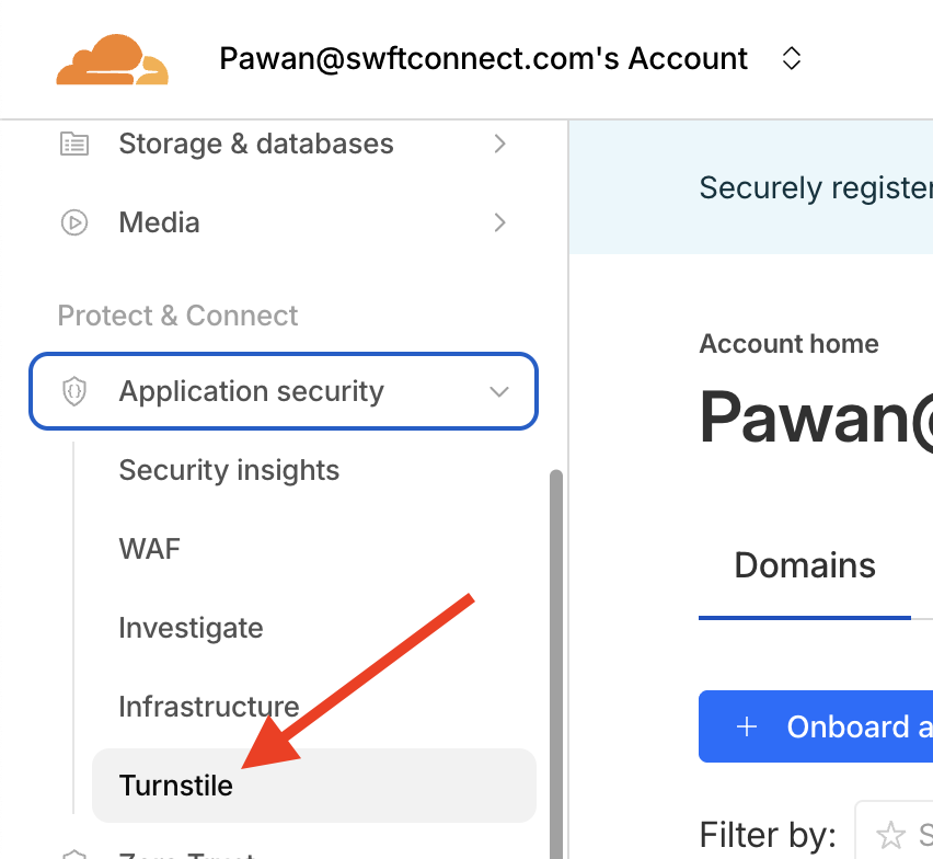 In the Cloudflare dashboard, open the left-hand menu. Click Turnstile