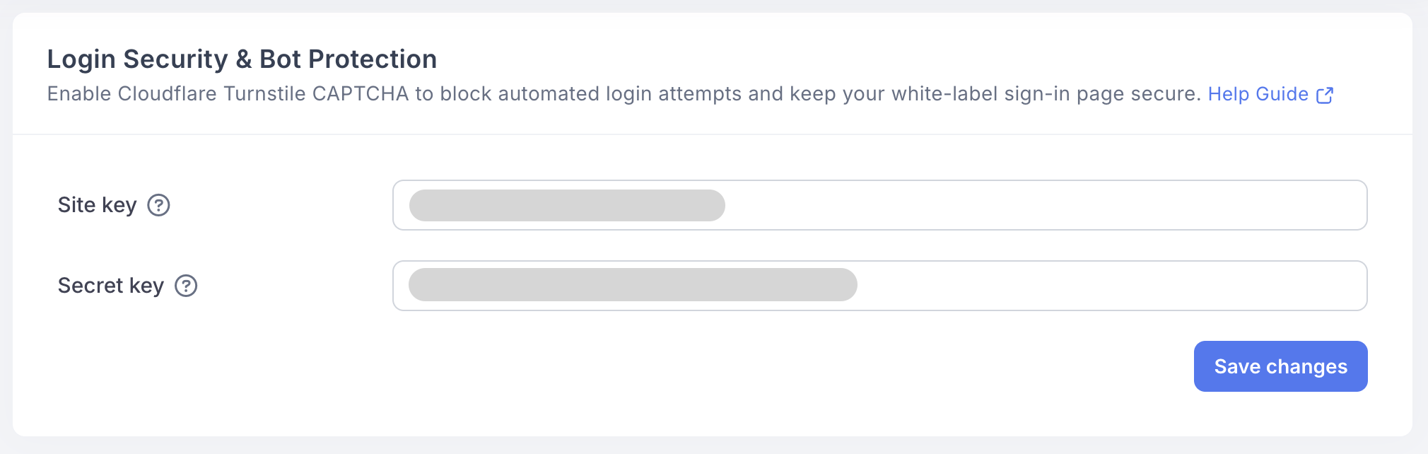 Cloudflare Turnstile adds protection to your white-label sign-in page by blocking automated login attempts and malicious bots, without using traditional CAPTCHAs.