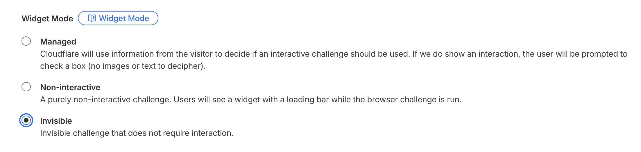 For advanced configuration options, refer to Cloudflare’s official Turnstile documentation.