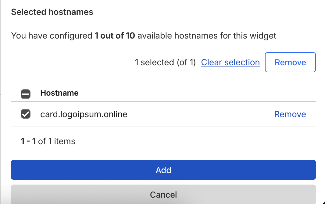 Under selected hostnames, select your domain and click Add at the bottom of the screen.